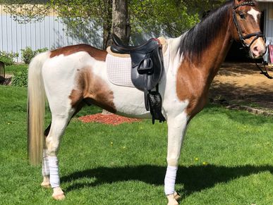 Ringo is a sadllebred I recieved in training from the Minnesota Animal Resue Foundation. He had a severe mounting issue. Quickly rehabilitated into a wonderful partner for the best young girl ever!