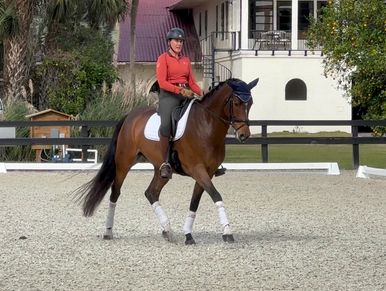 Waldo came from a client that bought him from a thoroughbred rescue. He had severe reactions to the bit and contact. He in a few short months went on to be sold to a wonderful gal who still has his to this day and adores him!
